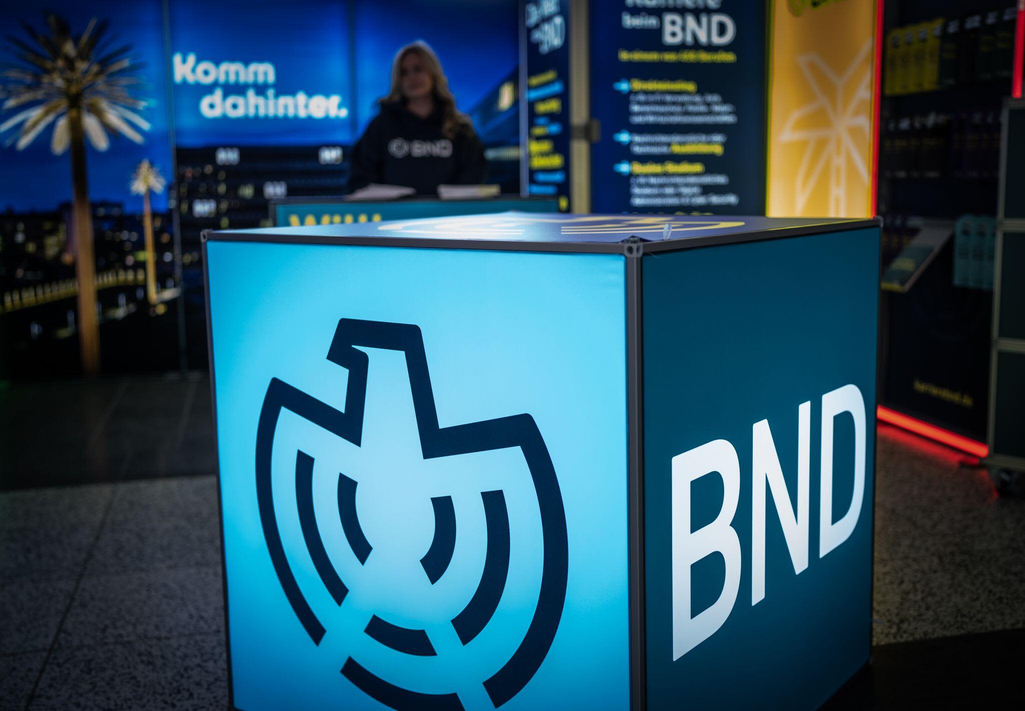 Mit einem neuen Logo, das einen stilisierten Adler mit der Abkürzung BND kombiniert, einer auffälligen Farbpalette sowie dem Claim „Komm dahinter“, will der BND ab sofort das Interesse bei potenziellen Bewerbenden wecken, die Behörde und ihre Arbeit besser kennenzulernen. Zentraler Baustein der neuen Markenidentität ist die neue Wort-Bild-Marke, in der der gesellschaftliche Auftrag und die intern identifizierten Werte des BNDs – Bereitschaft, Neugier, Integrität, Zusammenhalt, Akribie, Weltoffenheit – visualisiert werden. So deutet die runde Form des Adlers beispielsweise eine Weltkugel an, um den Auslandsbezug und den Mehrwert für unsere Welt und ihre Grundordnung zu zeigen. Die konzentrischen Kreise präsentieren die parlamentarische Sitzordnung und damit die demokratische Legitimation. Nicht zuletzt zeigt der neue Adler eine moderne Form des Bundesadlers, die sich von anderen Organisationen und Bundesbehörden unterscheidet, ohne den Ursprung und die Zugehörigkeit zu verlieren. Der neue Claim repräsentiert einen Nachrichtendienst, der einlädt, potenzielle Talente selbstbewusst herausfordert und für mehr Offenheit einsteht. Er spielt mit der Entdecker-Charakteristik und den Mythen des BNDs und animiert dazu, hinter die Kulissen zu blicken.