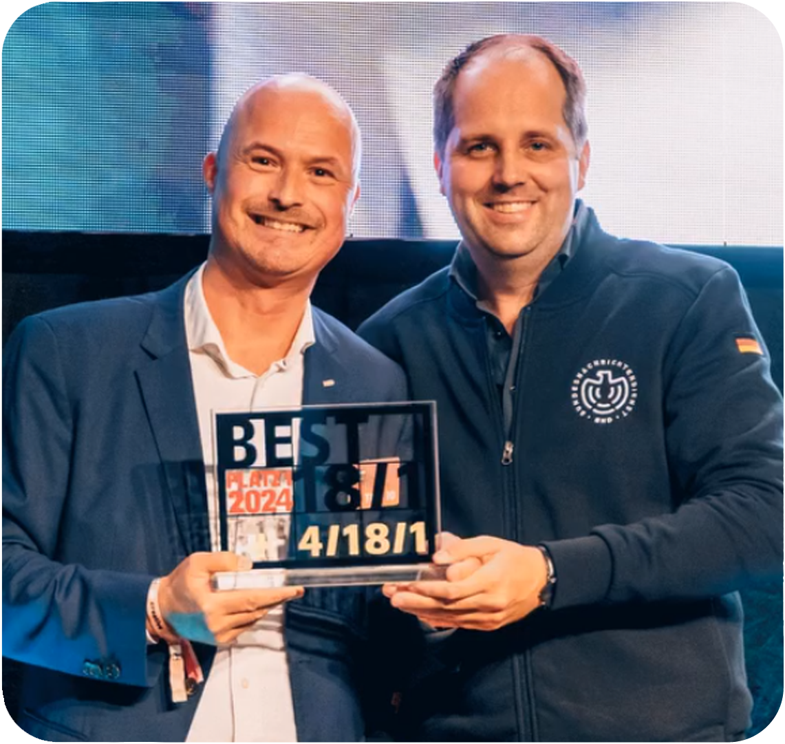 Martin Heinemann (Pressesprecher des BND und Leiter Kommunikation) und Toni Ramlow (BND) nahmen den 18/1 Award im Rahmen einer Abendveranstaltung entgegen. Beide freuen sich darüber, dass nun auch die Agentur durch die nachträgliche Namensnennung die verdiente Anerkennung erhält.