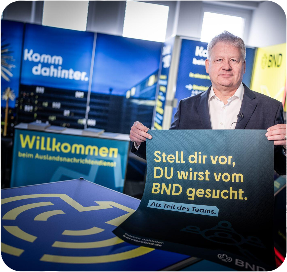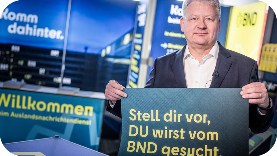 „Unser Ziel ist, bei noch viel mehr Menschen als attraktiver Arbeitgeber auf dem Radar aufzutauchen“, erklärt BND-Präsident Dr. Bruno Kahl zum Markenstart. „Viele passen zu uns – und wir zu ihnen, aber sie haben den BND noch nicht auf dem Schirm.“